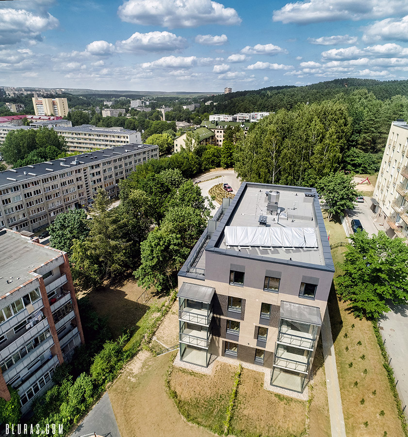 Projekto vieta gal ir nieko – toliau nuo gatvės, rami Antakalnio dalis. Pats namas neaukštas ir nedidelis, atitinkantis A+ klasės reikalavimus, tačiau pliusai čia ir baigiasi.
