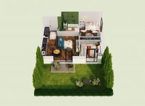 Klevų namai projektas Jūsų akis džiugins moderniais fasadais bei patogiai suplanuotais „A+“ energinės klasės naujais butais. Dideli atstumai tarp namų suteiks erdvės ir laisvės pojūtį, šiltais vakaro saulėlydžiais galėsite mėgautis balkonuose, o pirmo aukšto gyventojai – net savuose kiemeliuose.
