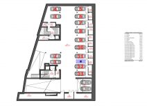 Po pastatu įrengta erdvi dviejų aukštų, 35 vietų požeminė automobilių stovėjimo aikštelė.