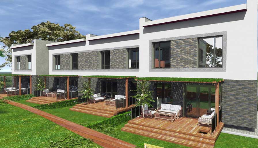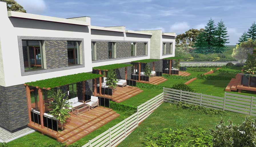 Namų architektūra – šiuolaikiška, stilinga ir harmoninga. Namų formos, spalvos dera sklandžiai su gyvenvietės gamtos akcentais. Patalpų erdvės pojūtį papildo 3 metrų aukščio lubos.