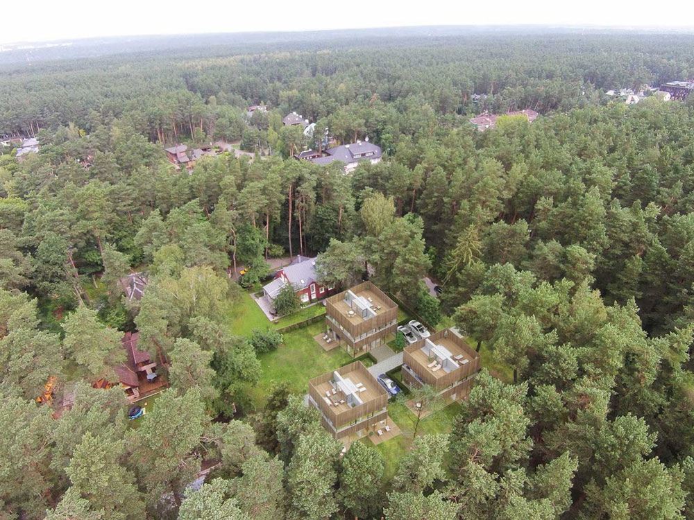 Visiems namams priskiriama nuosavos žemės dalis, įrengiamos terasos ant stogo ir lauko zonose. Erdvės namuose suprojektuotos išnaudojant kiekvieną metrą. Namuose įrengiami kokybiški panoraminai mediniai langai, autonominis dujinis šildymas, rekuperacinė vėdinimo sistema. Namams priskiriamos automobilių parkavimo vietos aptvertoje zonoje šalia namo. Nepriekaištinga kokybė, unikali architektūra, natūralios spalvos, ilgaamžiai sprendimai bei technologijos projekte panaudotos taip, kad darniai įsilietų į Valakampių miško aplinką ir sukurtų darnią harmoniją su gamta.